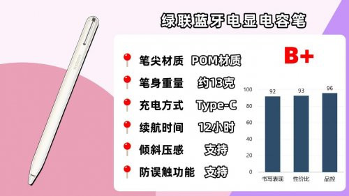 推荐4:百元口碑之选——绿-联蓝牙电显电容笔